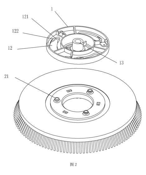 旭潔洗地機刷盤的安裝方法是:使用刷盤升降踏板升起刷盤座,將刷盤放到刷盤座中央,向上貼合刷盤座,向左旋轉,待刷盤裝好,啟動刷盤開關,刷盤轉動,完成裝刷操作。目前市場上所有洗地機品牌基本都是通過類似的電機導向實現刷盤固定座與刷盤的自動對位,在對位的過程中,刷盤固定座與刷盤的安裝端面剛性碰撞,會產生強烈的碰撞對位噪音,影響操作者使用舒適性。為了提高用戶體驗,旭潔新型洗地機進行了研發和改善。